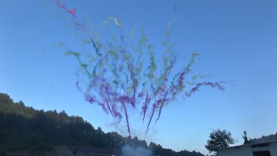 Crackling mine, purple smoke comet spit red star and thunder and red smoke willow