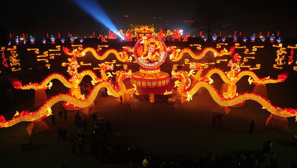 At Spring Festival noisy national celebrations and fairs is taking place during several days, where people perform the dance of lions and dragons, round dances of “land boats”, performances on stilts. New Year celebrations ends after the Festival of Lamps, in the fifteenth day of the first month at the Lunar calendar.