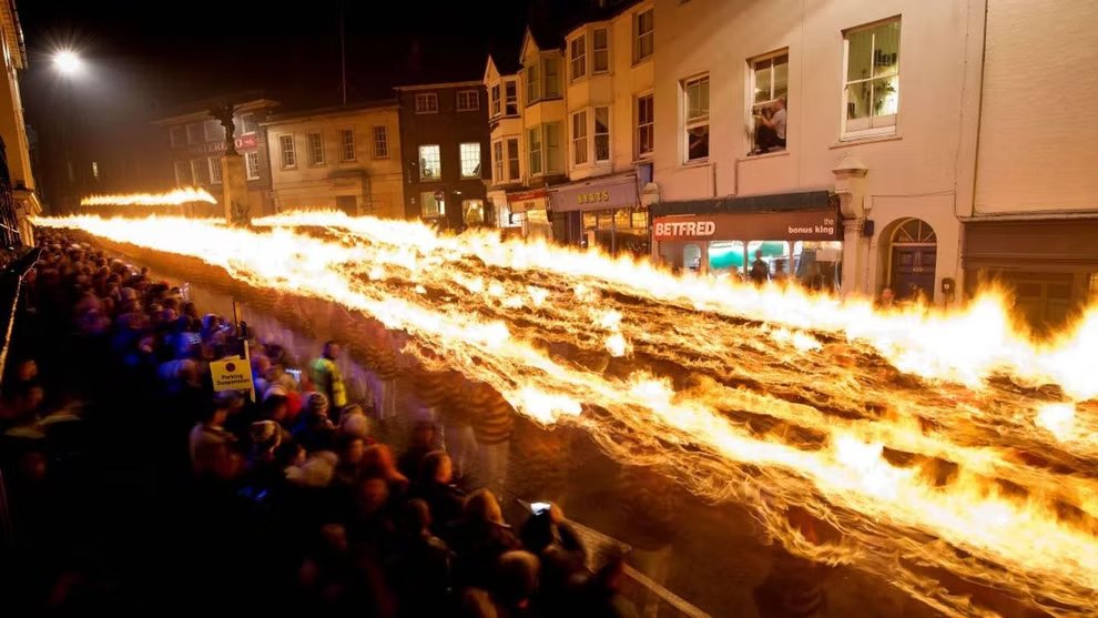 It is the biggest and the only proper bonfire night celebration left of its kind in the UK. In fact, this is not one celebration as such, there are in fact six separate Lewes Bonfire Society’s all celebrating the Fifth in various parts of the town. Additionally, there will be around 25–30 visiting bonfire societies from all over Sussex, with numerous marching bands.