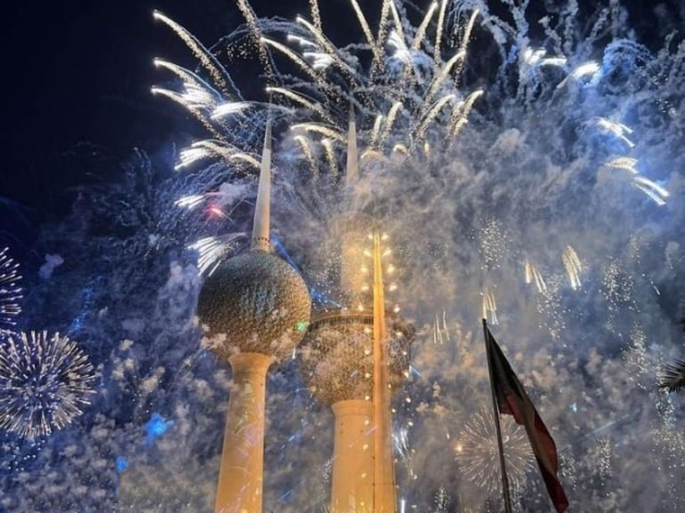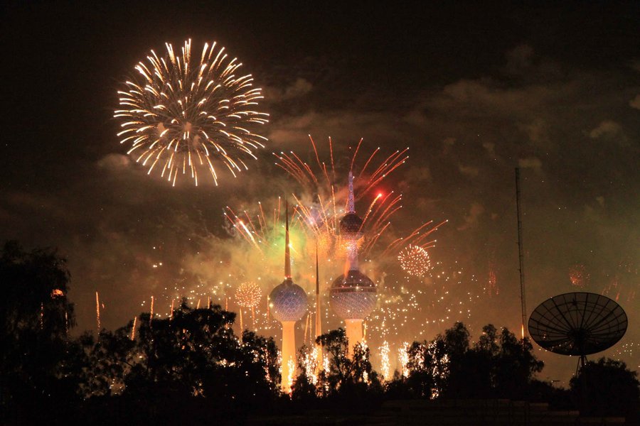National Day is a public holiday in Kuwait since 1963. On this day people decorate their houses with colorful lights, flags, and even candles are lit at dinner time. The historical places like Kuwait National Museum, Youm Al Bahhar Historical Village, Mirror House, and Kuwait Towers are decorated with light. Flags are hoisted in buildings and displayed in public spaces. And of course, the whole country enjoys evening fireworks. We also invite you to enjoy the magnificent fireworks celebration display.