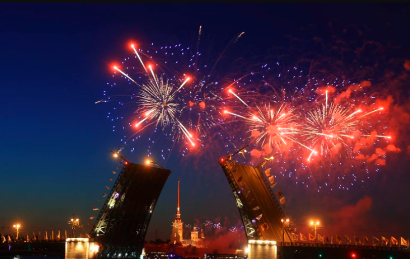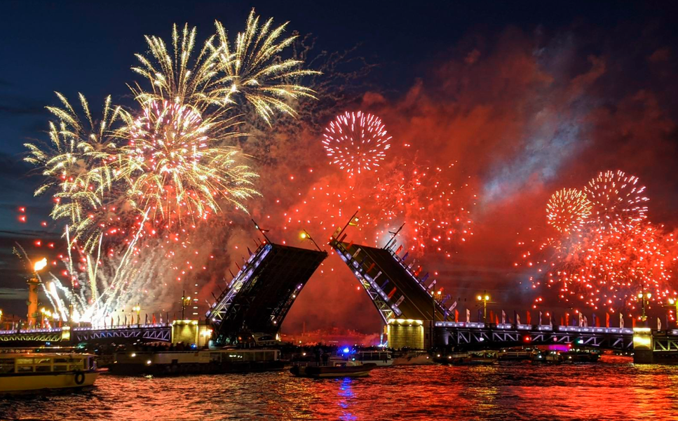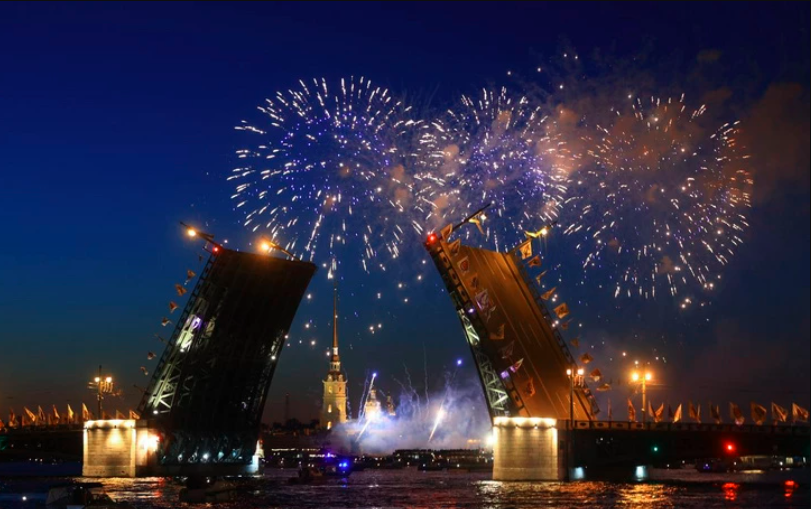 The day began with a flower-laying ceremony at the monument to Peter the Great on Manezhnaya Square; a little later, torches were lit on the Rostral Columns. At noon, a festive concert was held on Petropavlovskaya Square, and in the evening guests and residents of the city were treated to a gala concert of classical art stars on Palace Square and the "Music of the Palace Bridge" festival on Admiralteyskaya Embankment. At midnight, the main event of the holiday was held - the Petrovsky Fire Festival!