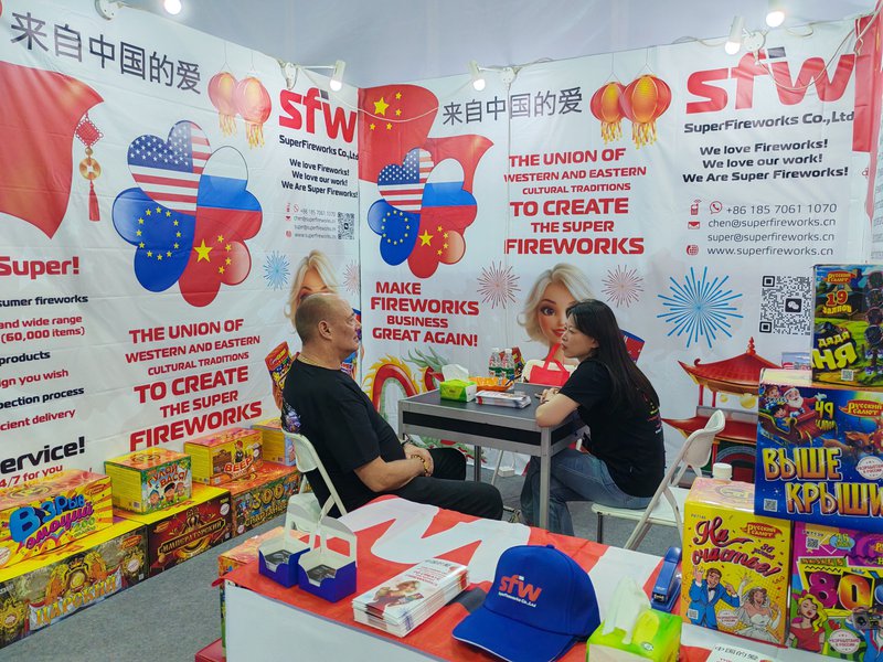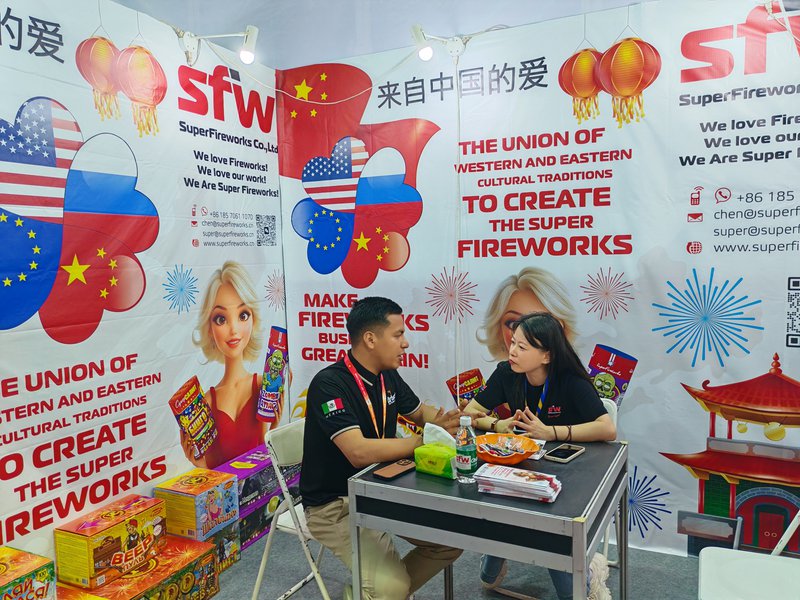 The 19th International Symposium on Fireworks (ISF) is currently in full swing.We Superfireworks Co., Ltd has gained a lot from this exhibition. We meet clients from all over the world, including Mexico, Brazil, Russia, Malta, India, France, Poland and so on.This exhibition attracts both experienced clients who have been deeply involved in fireworks trade for 20 years, as well as new clients who come here to purchase fireworks for the first time.