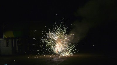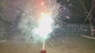 Fountain+roman candle Fountain: 1. Gold spring and red white pine flower 2. Gold sprin and green silver blast 3. Blue gold silk Roman candle: red green star and chrys