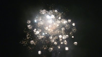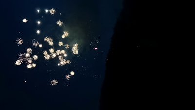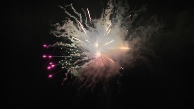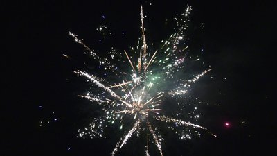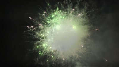 Red tail red palm white strobe, green tail red green pearl crackling, green tail brocade crown to red green palm, red tail purple pearl green strobe, green comet tail post , red tail red palm chrys .