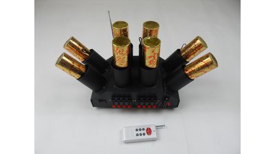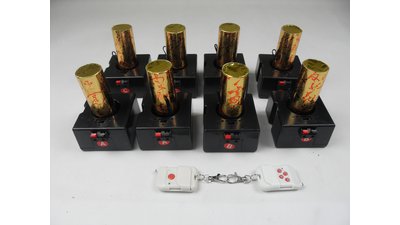 ELT08R Firing System use 4 pieces NO.5 battery to supply the power, has 8 pieces racks for fan-shape, it is very easy to use. The machine is in “study” style, it can use one remote to control many pieces machines firing together. One port can fire 4 pieces igniters in series together.