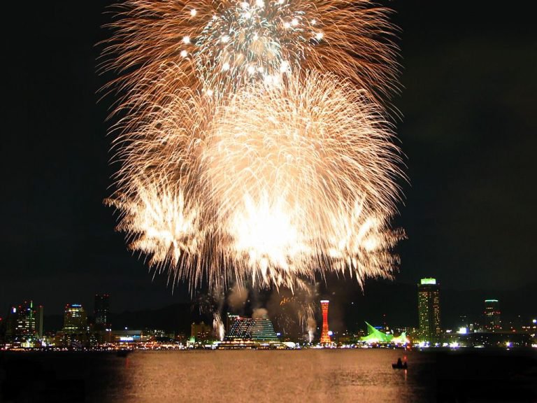 SuperFireworks Company приглашает Вас насладиться зрелищем фейерверков, запускаемых с барж между заливом Кобе и Портовым островом.