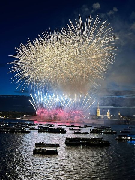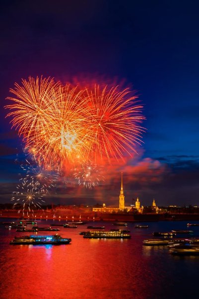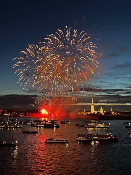 За пять минут до наступления полночи 28 мая Петропавловская крепость Санкт-Петербурга озарилась огнями салютов. Потрясающее шоу, о котором SuperFireworks, Ltd. писали ранее, завершало второй день празднования Дня города в Санкт-Петербурге: начался Фестиваль огня.