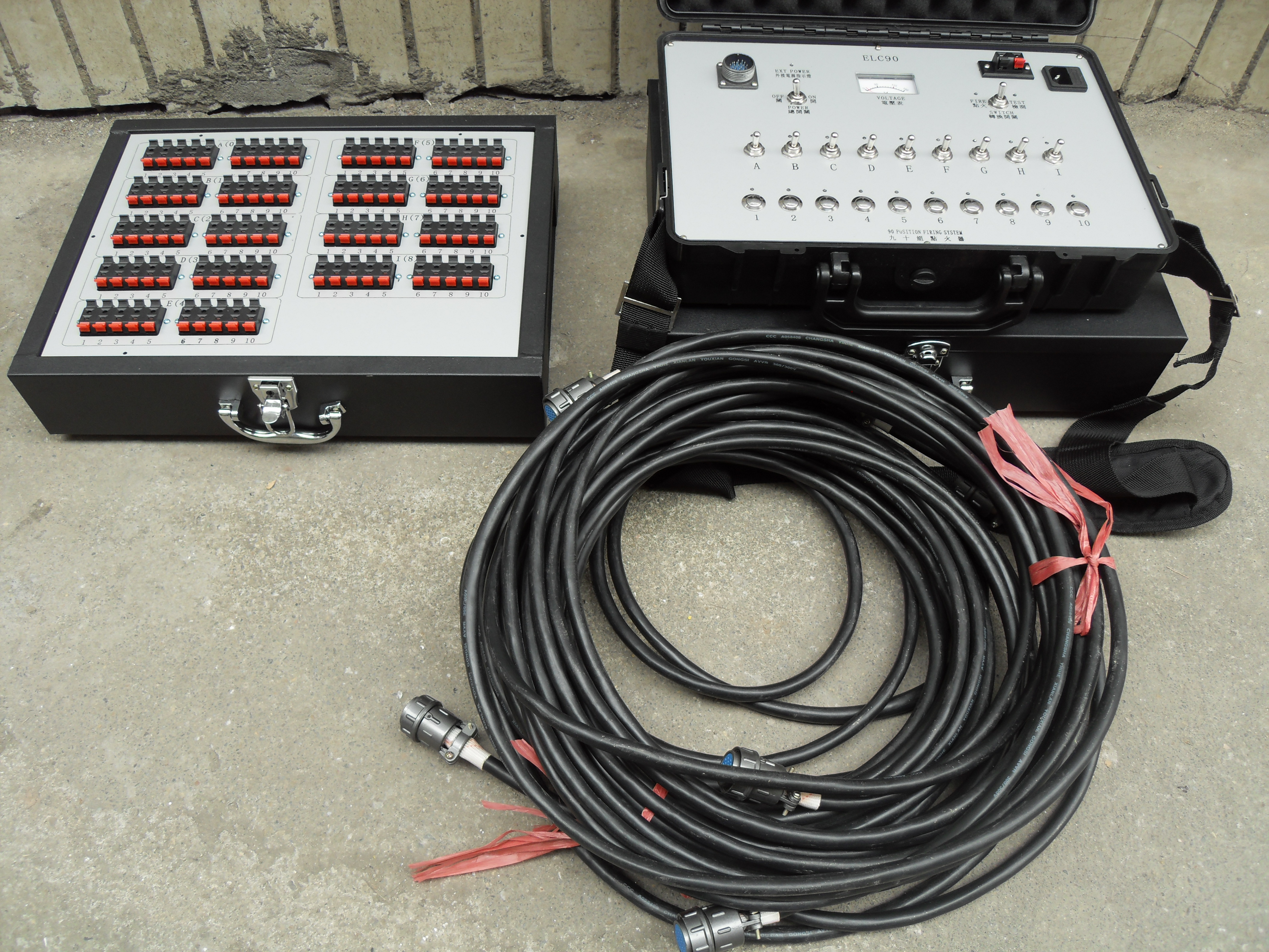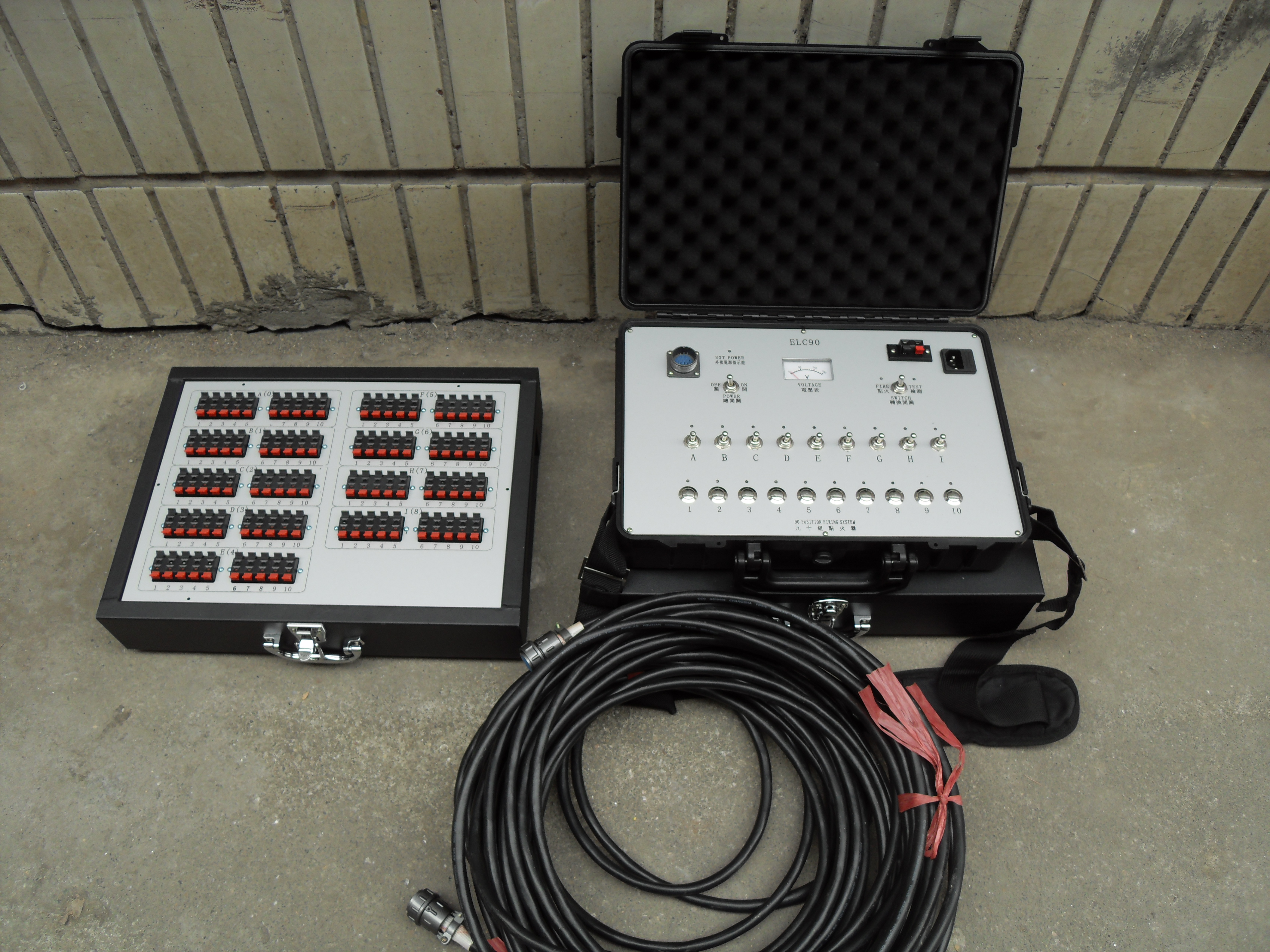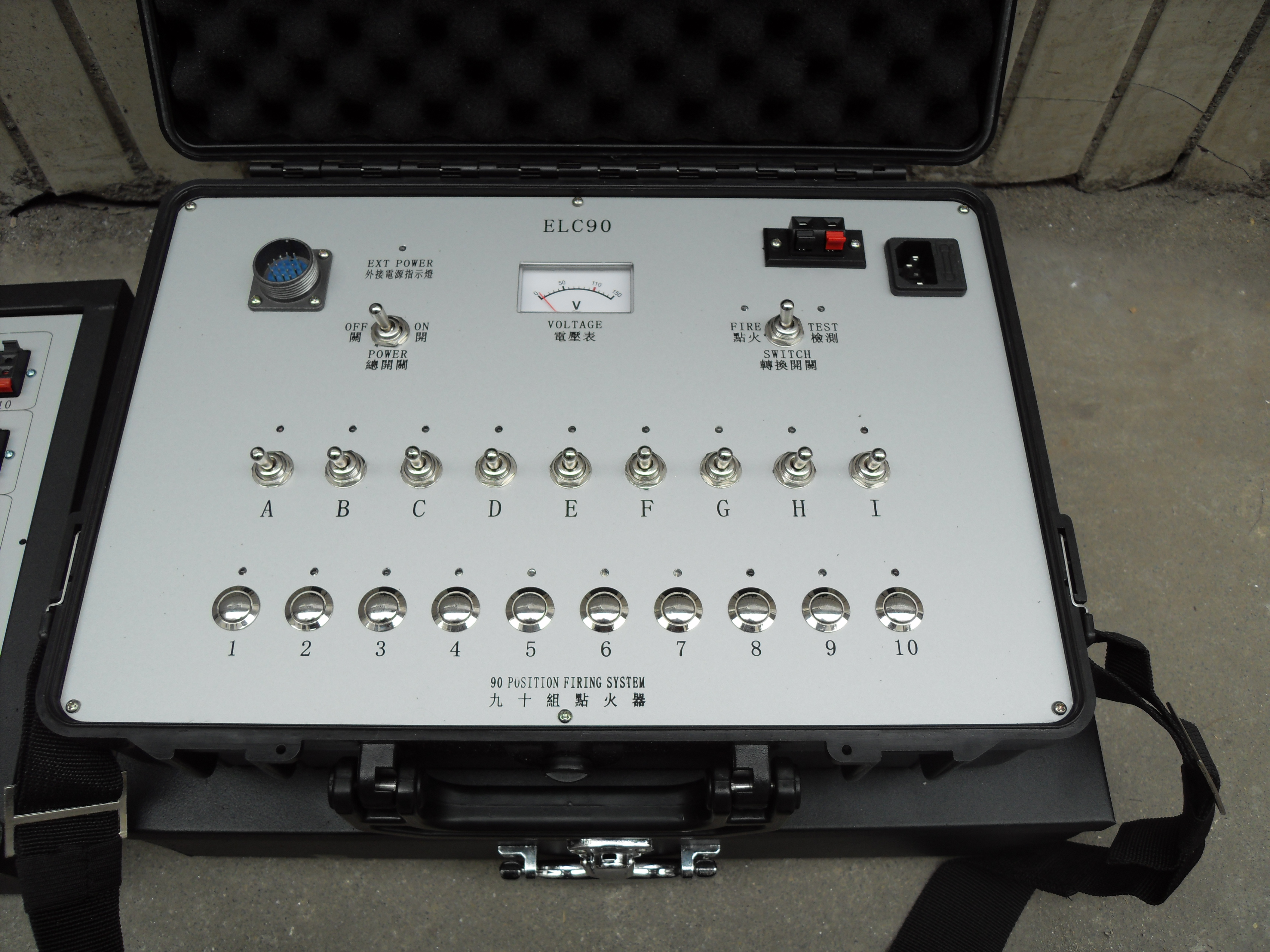 Model ELC90 carries three junction boxes – A,B,C,D,E,F,I,J,K- and 90 channels. Each channel can support the firing /discharging of 20 electrical matches at on go. The model comes with 70 M lead cables, plus additional of 15 M which the customer can order separately.