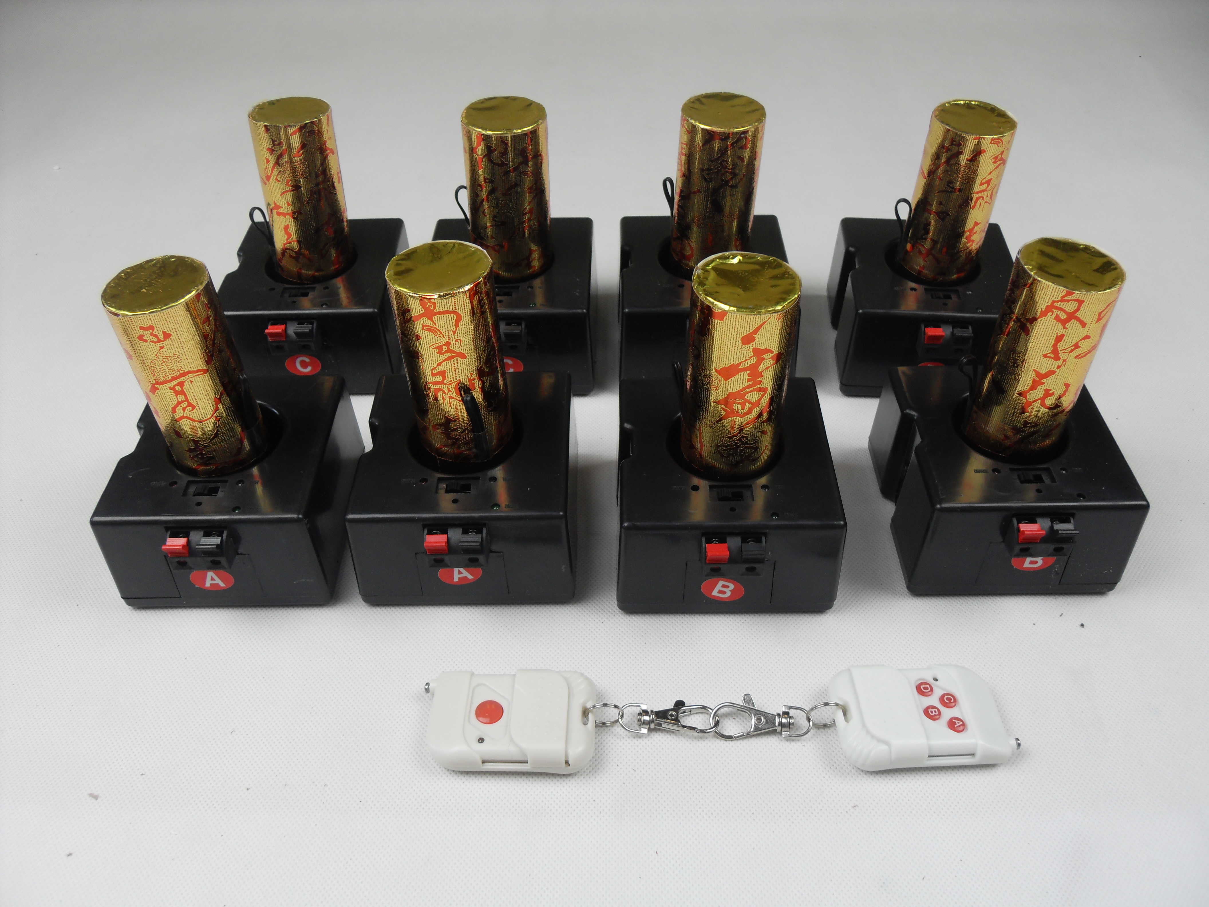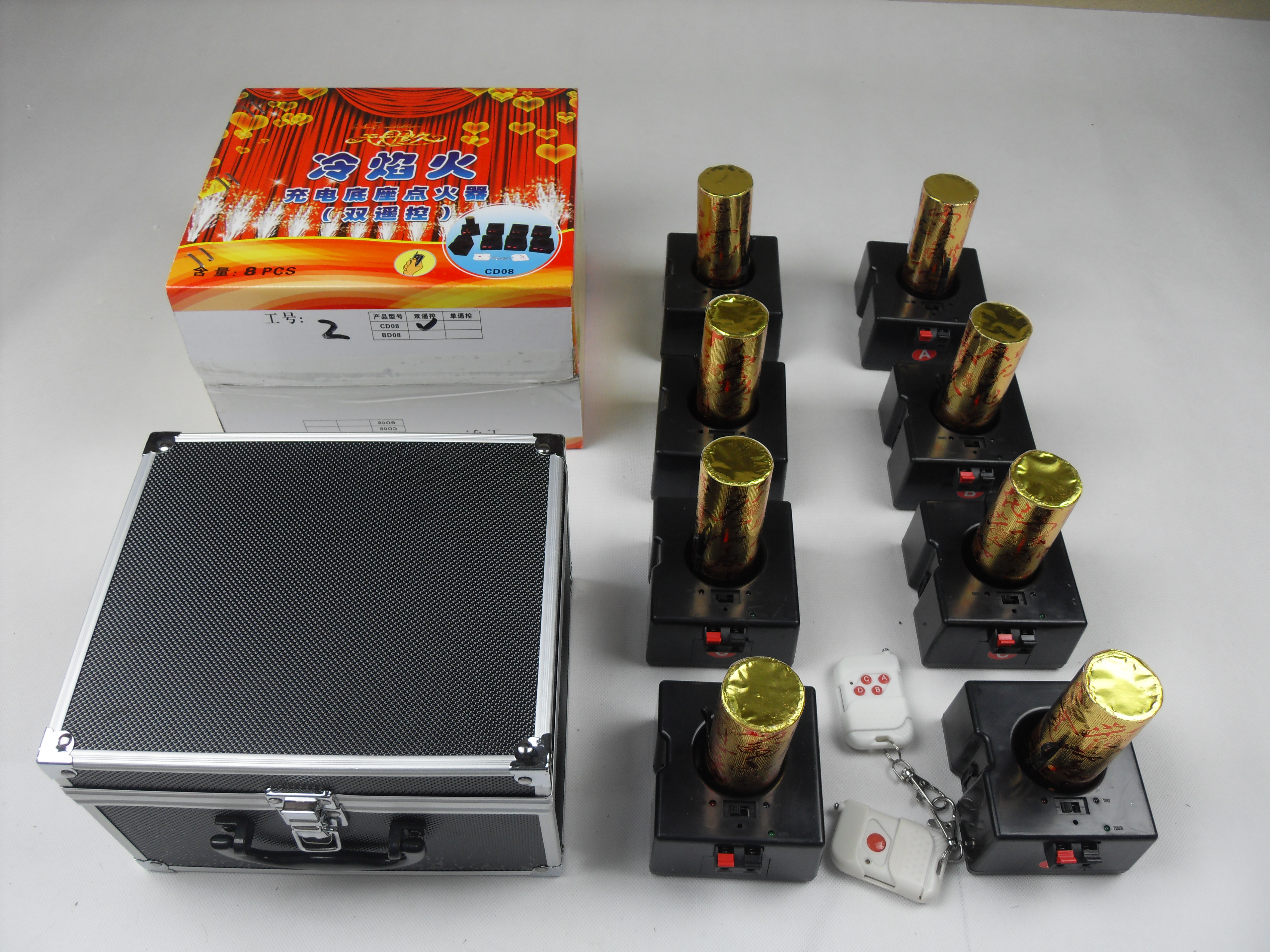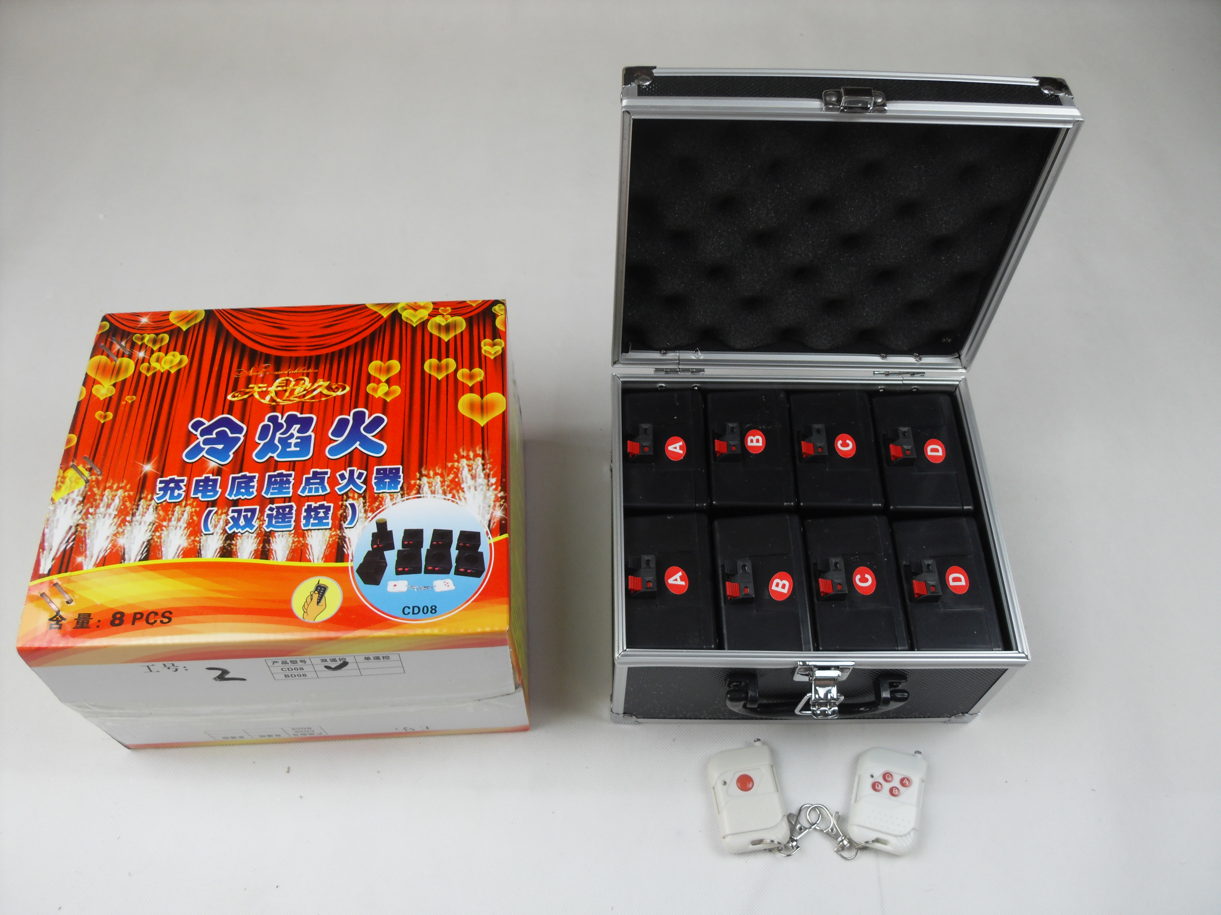 Технические характеристикиWelcome to use CD08 cold flame firing system. The products include one remote with 8 keys and 8 pcs receivers for cold flame. Each receiver has battery inside. Can take in the biggest diameter for clod flame is 4.2CM.the distance of the remote is about 80M.