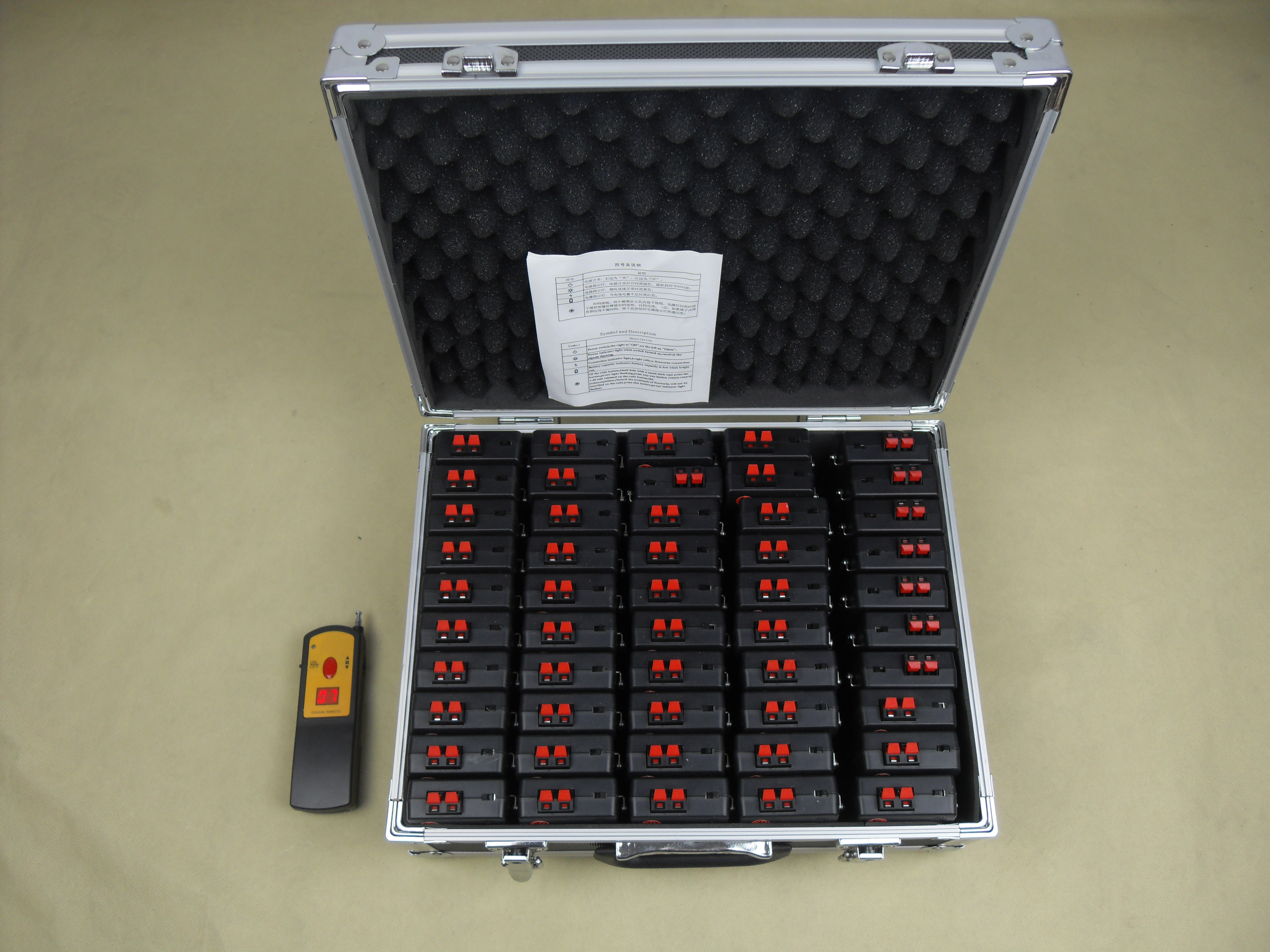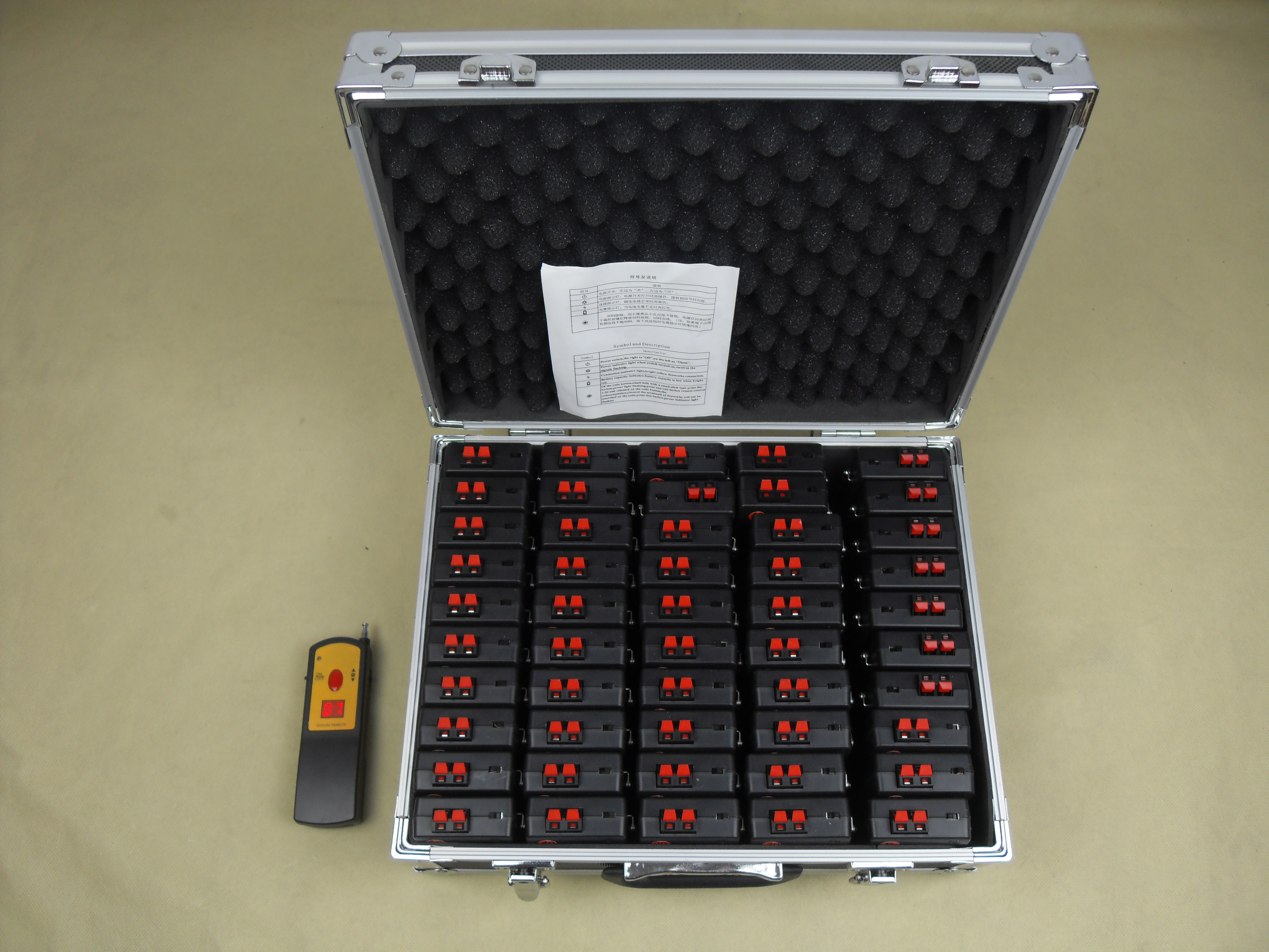 T-50 is a practical small size,a remote controlled electronic ignition of many fireworks products,using 1 million of non-repetition of the more secure codec technology,which allows the set off of fireworks can be tens of meters to a few hundred meters from the set off of wireless remote control,no ignition officers atclose range,have the function of a key with 50 groups at the same time set off and a key with 50 groups scan be set up the time in chronological order to set off,makes the fireworks'set off of the most convenient,the best results.