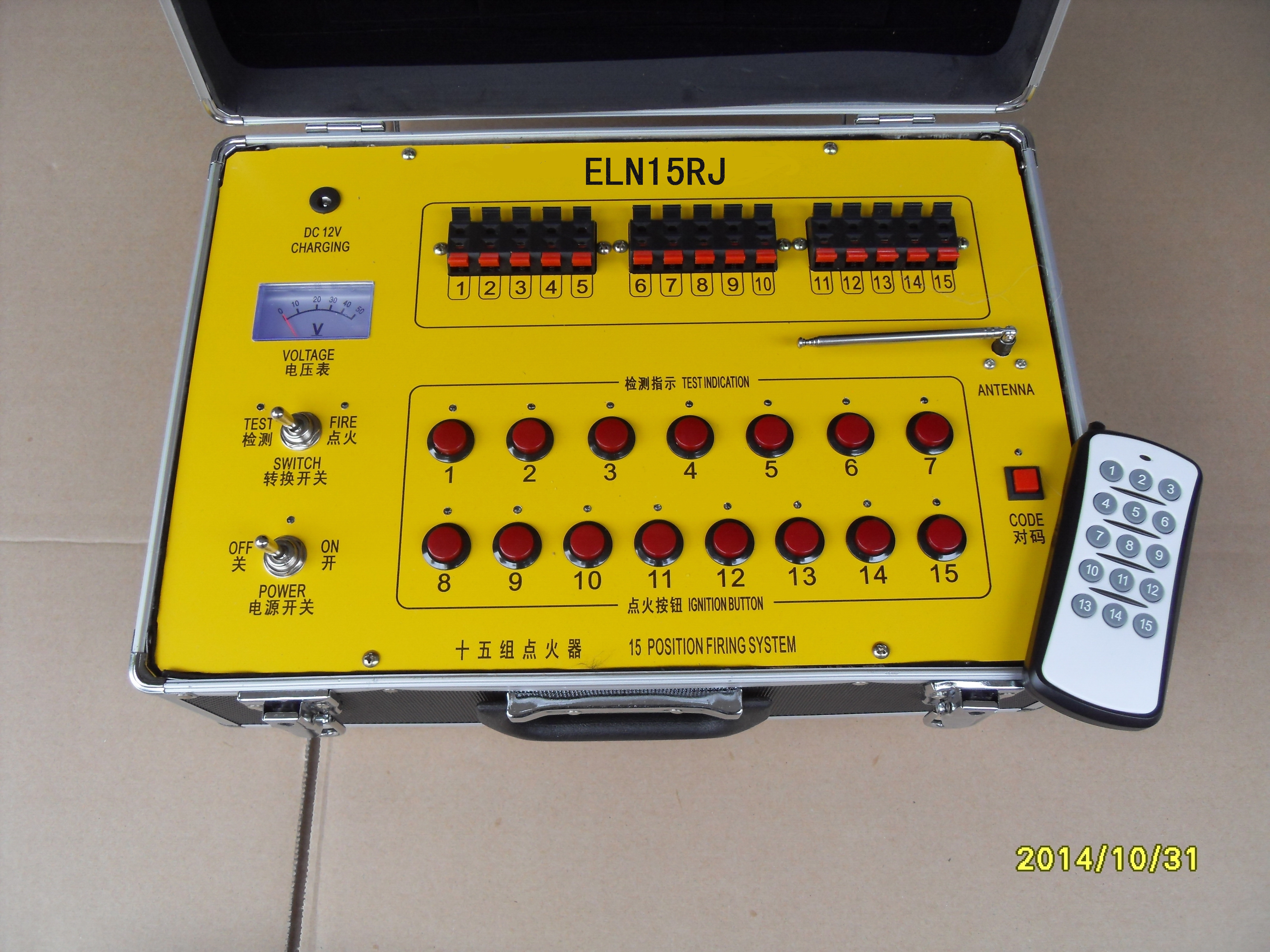 Технические характеристикиELN15RJ series system is a charging system, with 12V battery inside, output is 24V. Before you use, please charge 6-8hours. Each cue can ignite about 10 pieces in series at the same time. It is special for safety igniters。