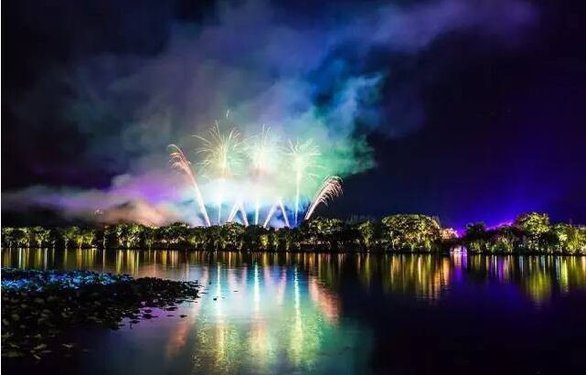 2016年8月30日,浙江省杭州市,G20进入倒计时,杭州西湖在全封闭前进行最后一次G20彩排,央视出动直升机航拍西湖。晚十时,烟花开始燃放,结束后,烟雾和“印象-西湖”灯光交相辉映,将天空变得五彩斑斓,一时炫目至极,路人皆停留拍照。美艳了杭州,更惊艳了世界。