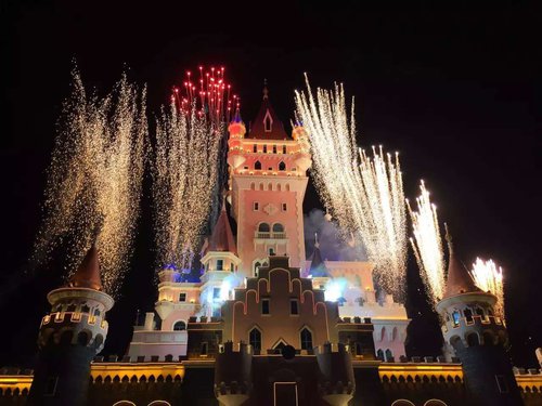 At 9 o'clock in the evening 15 gorgeous fireworks show with tourists countdown 10, 9, 8..., fireworks with music shine over the infante castle, visitors a whole whole cheers the scene to a climax!