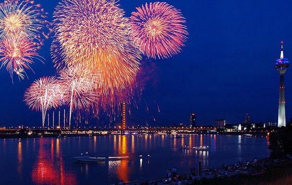 每年的5月到9月,周末焰火“莱茵河烟花”都会在德国最长的河流莱茵河上举行,沿河举行的城市有Bonn, Bingene , Ryudeskhayma, Spee-Koblenz, Obervesel , Sankt-Goarskhauzena to Sankt-Goare.等 其中最有名的当数7月15日在德国科隆举行的名为"Kölner Lichter"的科隆烟花节。