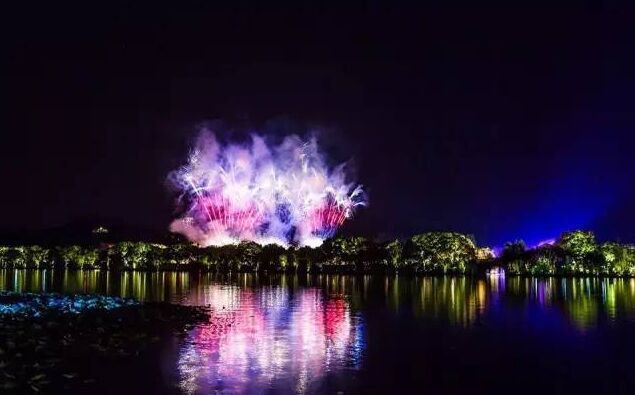 2016年8月30日,浙江省杭州市,G20进入倒计时,杭州西湖在全封闭前进行最后一次G20彩排,央视出动直升机航拍西湖。晚十时,烟花开始燃放,结束后,烟雾和“印象-西湖”灯光交相辉映,将天空变得五彩斑斓,一时炫目至极,路人皆停留拍照。美艳了杭州,更惊艳了世界。